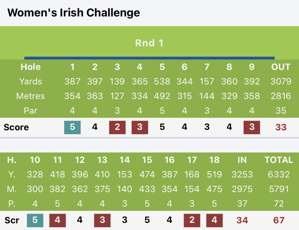 The week didn’t start well with a +4 opening round, leaving me well outside the cut. But I bounced back with a -3 (69) on day two (only 27 putts after changing my grip on short putts – clearly worked!). I was -4 through 9 holes and managed to make the cut.